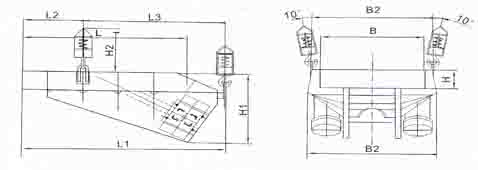 GZG電機(jī)振動給料機(jī)(電機(jī)側(cè)置式)電機(jī)轉(zhuǎn)動給料機(jī)設(shè)計時未考慮倉壓倒影響,為保證給料機(jī)的正常運行,必須盡量減少倉壓對給料機(jī)的影響。因此在設(shè)計溜嘴時,應(yīng)用溜嘴的后側(cè)板承擔(dān)料柱的垂直壓力。溜嘴形式及配置尺寸可參考圖及表中數(shù)值。
